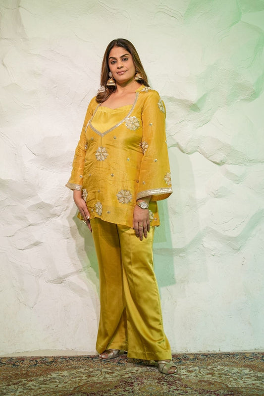 Absolutely in love with this stunning outfit from Nidhhi L Mahajan! The vibrant yellow and intricate detailing make it a showstopper. Perfect blend of elegance and style.