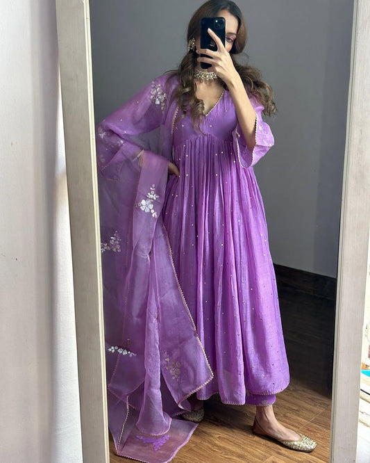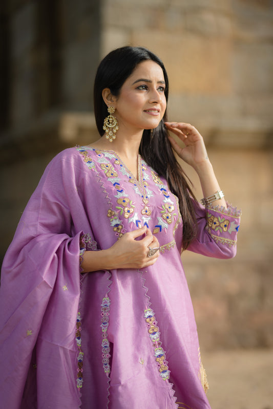 Grace in every fold! Loving this dreamy lavender outfit by Nidhhi L Mahajan – pure elegance!