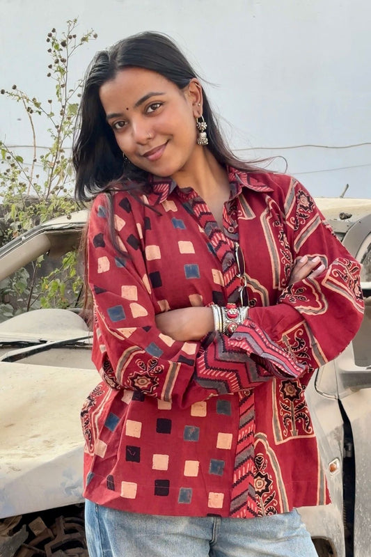 PURE HAND BLOCK PRINTED COTTON AJRAKH SHIRT