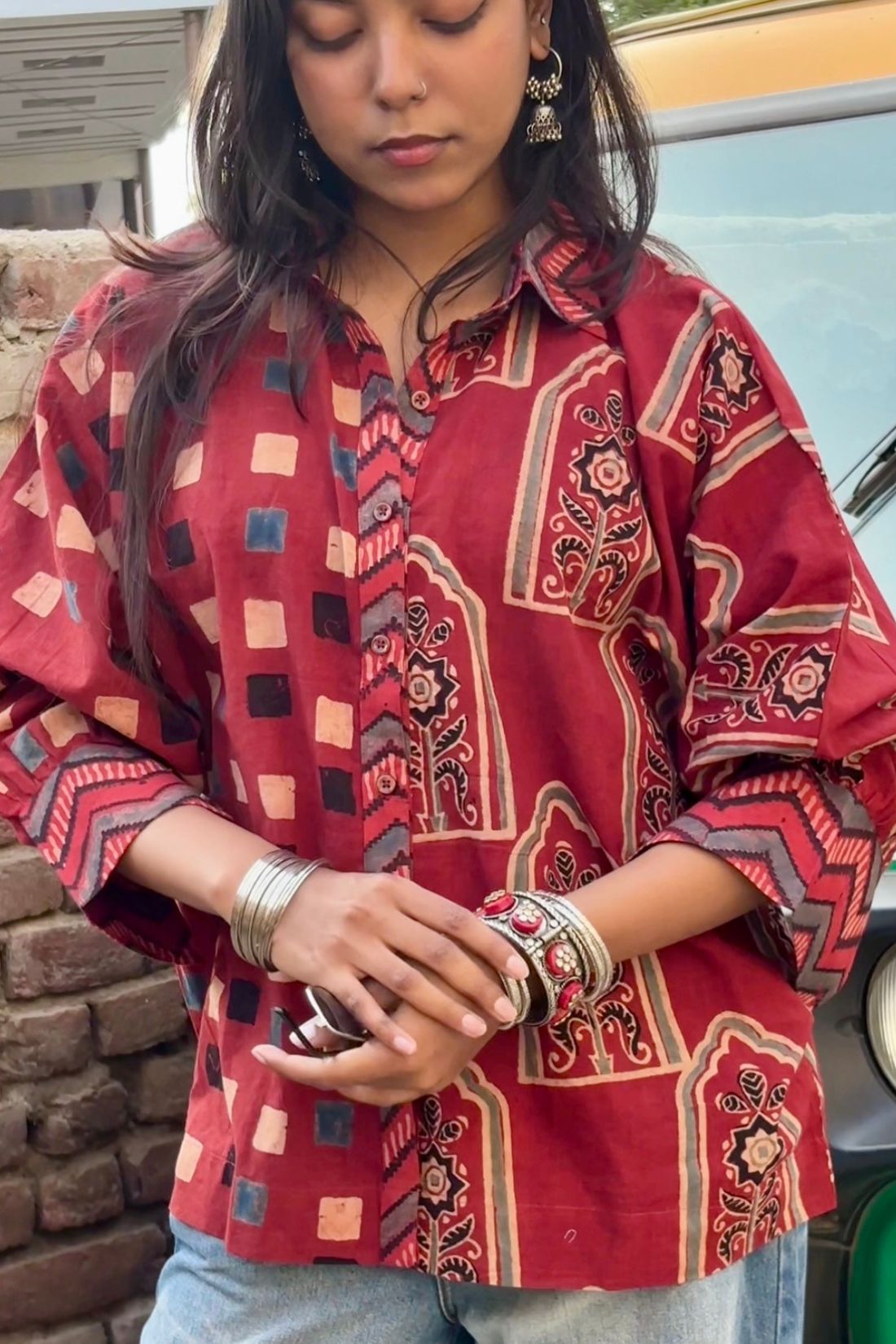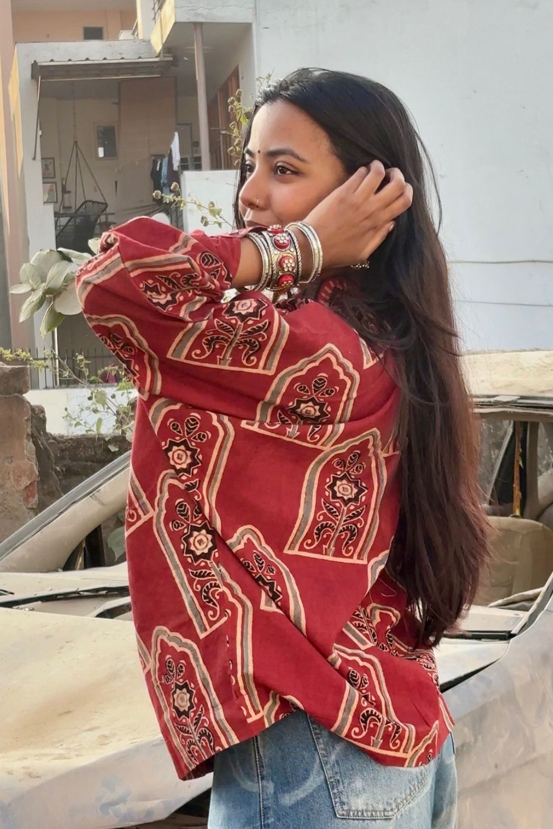 Experience the charm of heritage craftsmanship with our Pure Cotton Ajrakh Anti-Fit Shirt, thoughtfully designed for comfort and timeless style.
