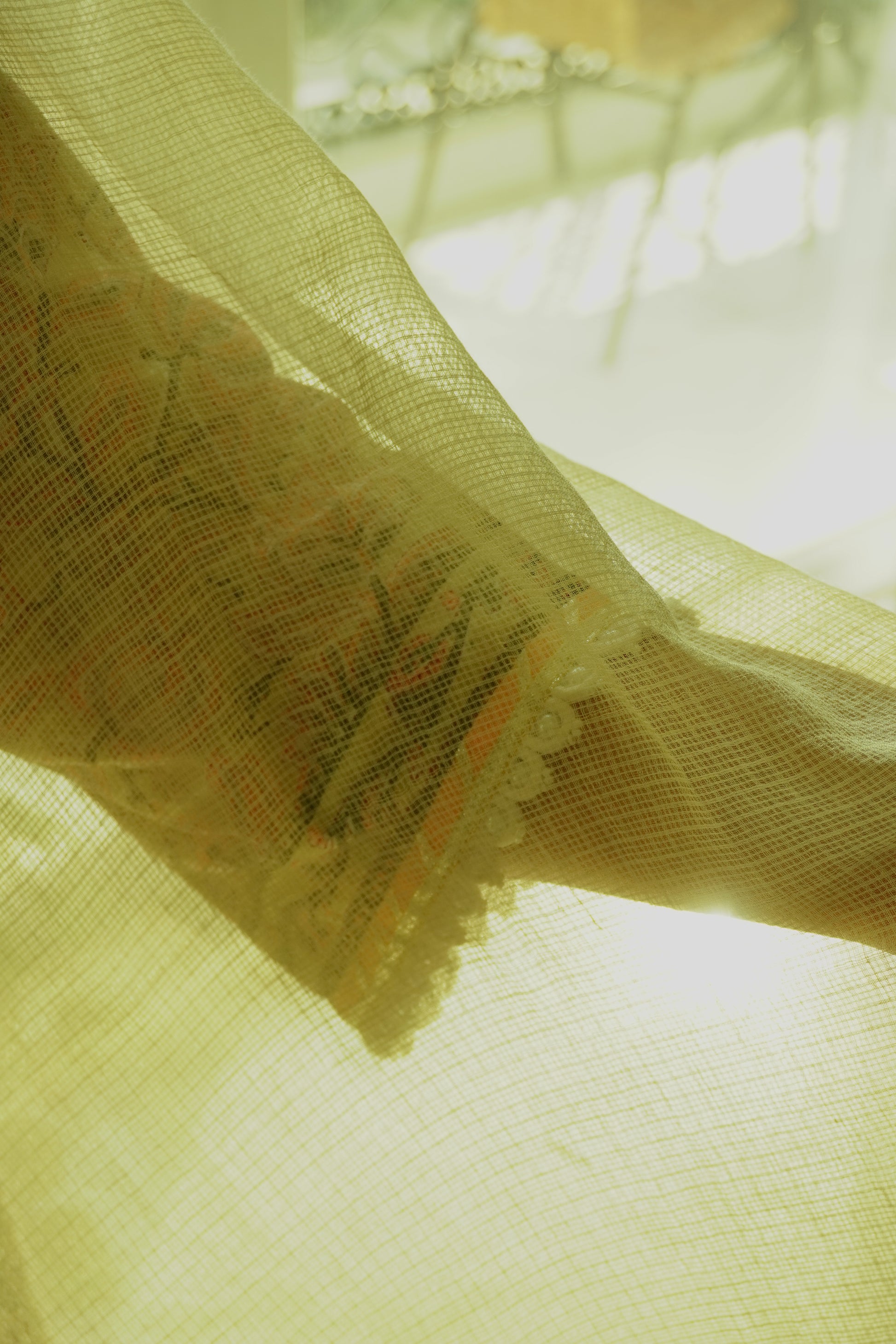 The shirt features intricate hand block prints with delicate gota and lace detailing, adding a subtle festive charm. Paired with a classic Farshi salwar, this ensemble offers both comfort and traditional appeal. The look is completed with a lightweight Kota dupatta, beautifully finished with matching gota and lace accents for a refined finish.