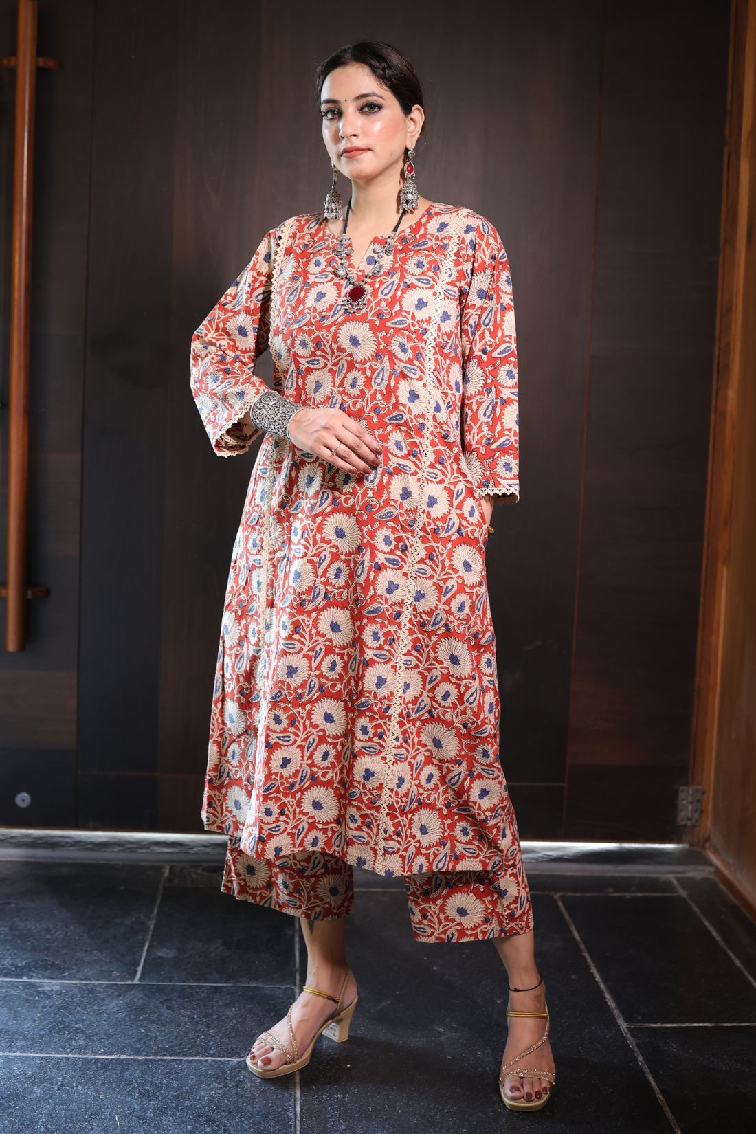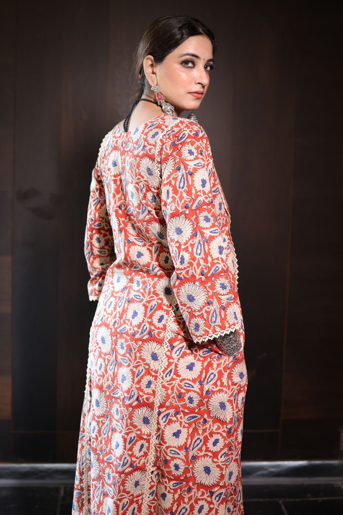 Elegant and timeless, this Kalidar Co-ord Set features a princess-cut kalidar silhouette enhanced with delicate lace detailing, offering a graceful and refined look. Paired with matching pants, this set is perfect for festive gatherings, celebrations, and sophisticated everyday wear.