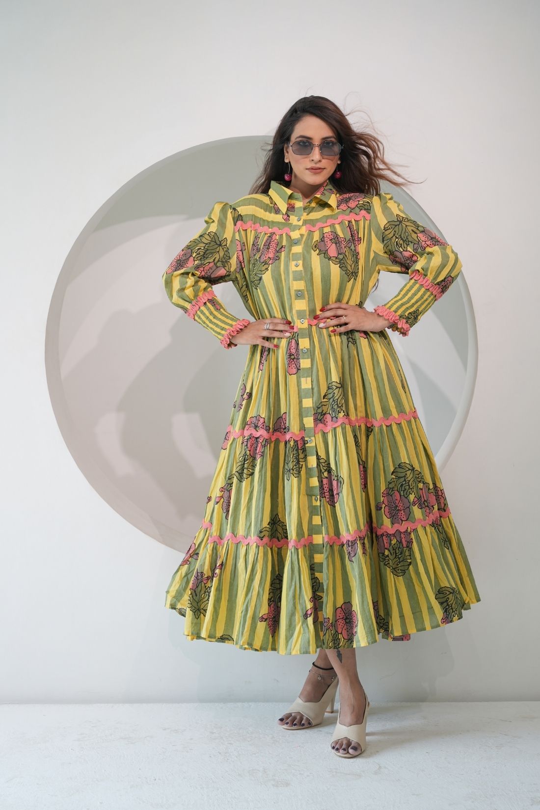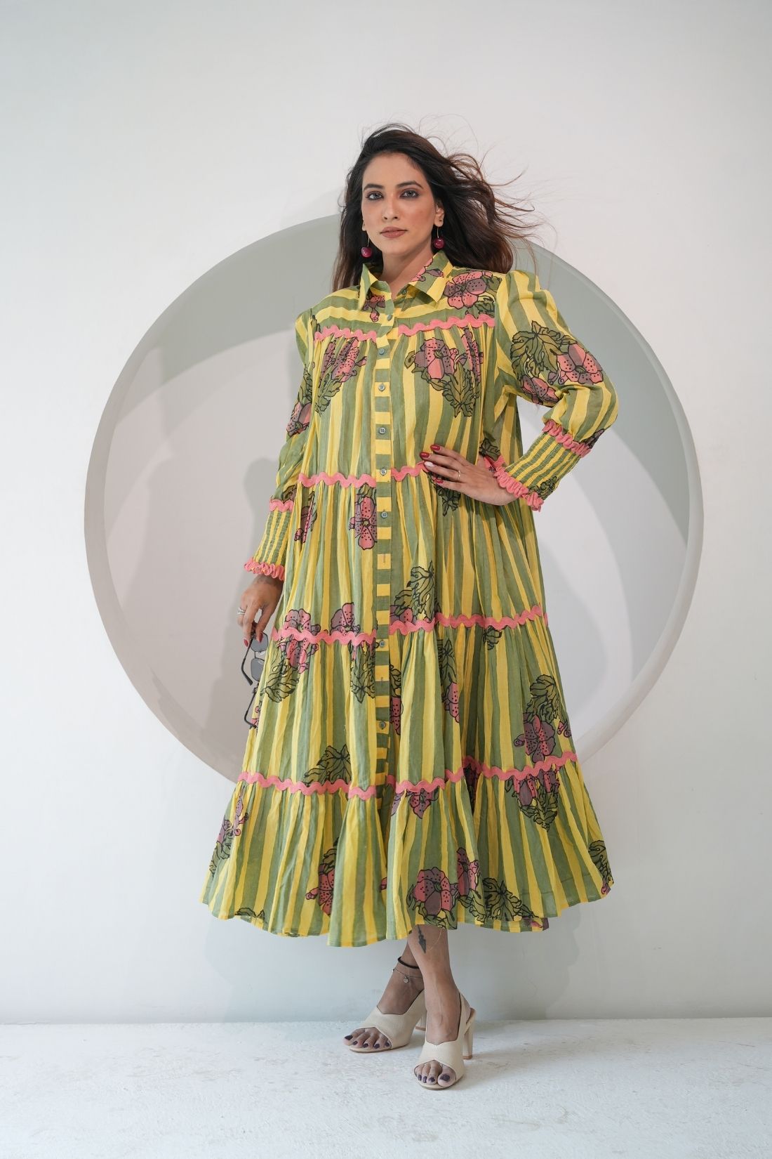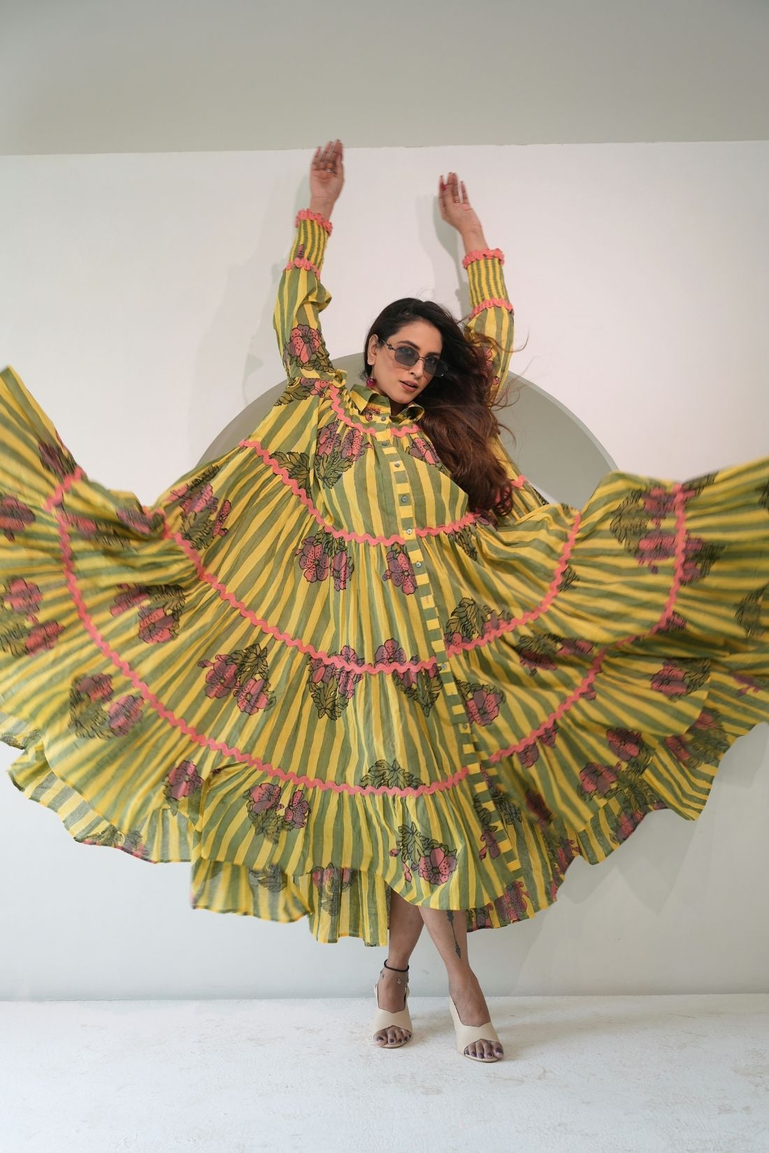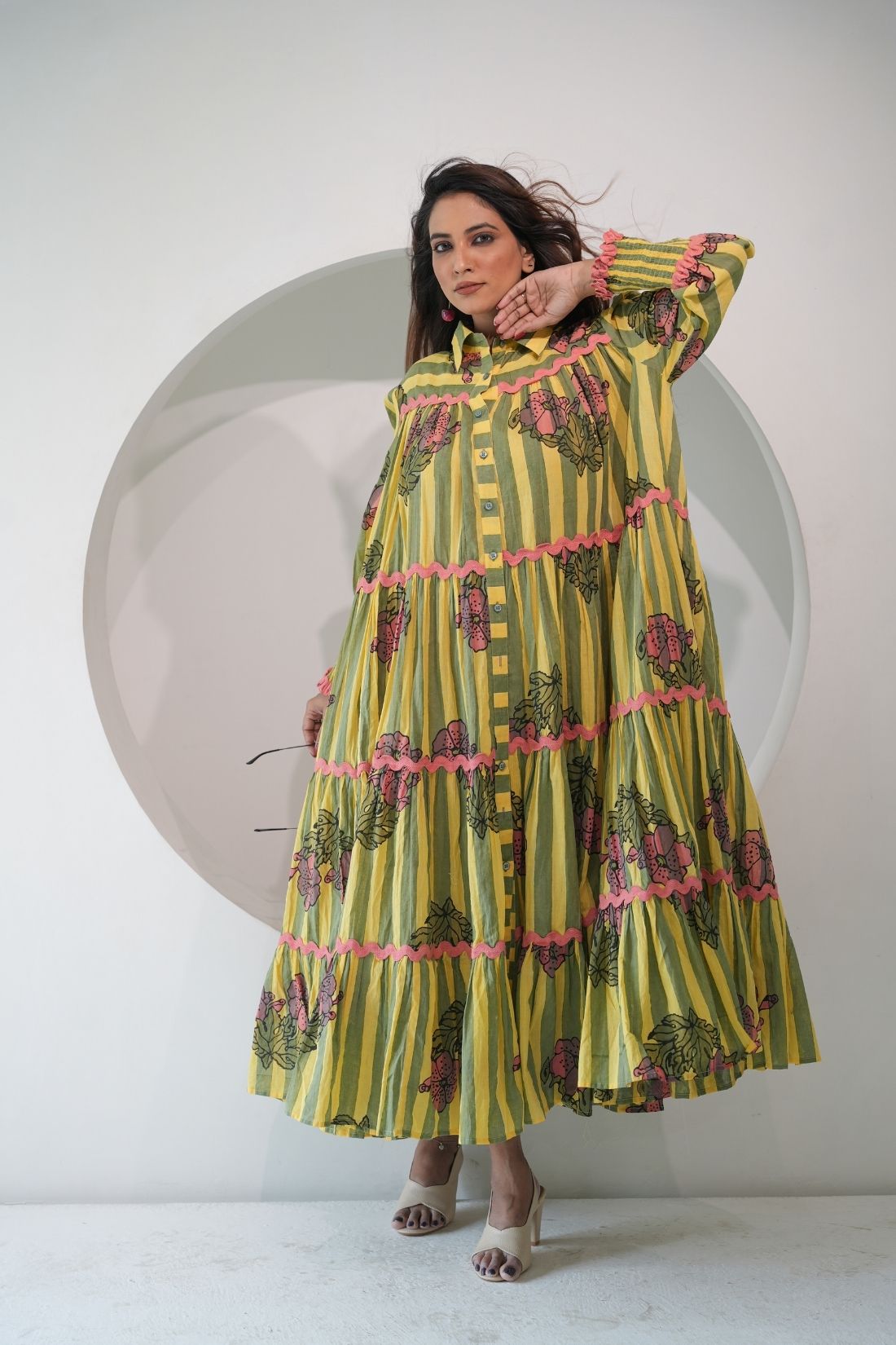 This Anti-Fit Cotton Dress blends relaxed charm with traditional artistry. Crafted from pure cotton and adorned with delicate handblock prints, it features a breezy anti-fit silhouette and is beautifully finished with lace accents — perfect for effortless, everyday elegance.